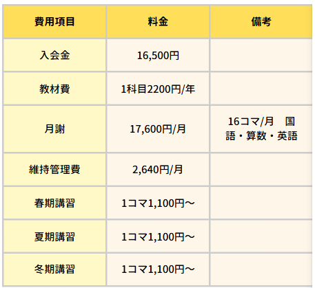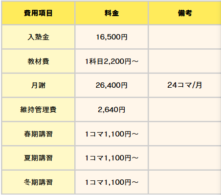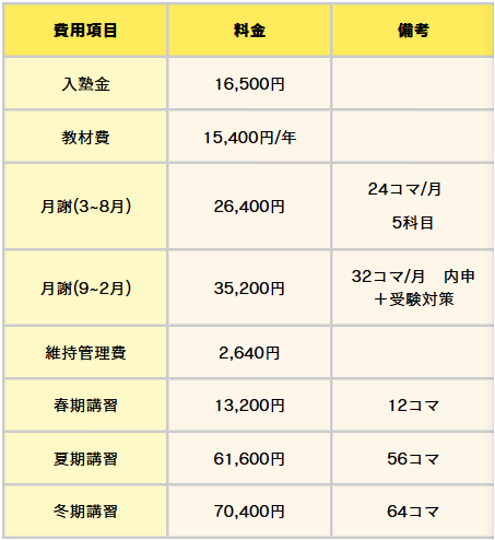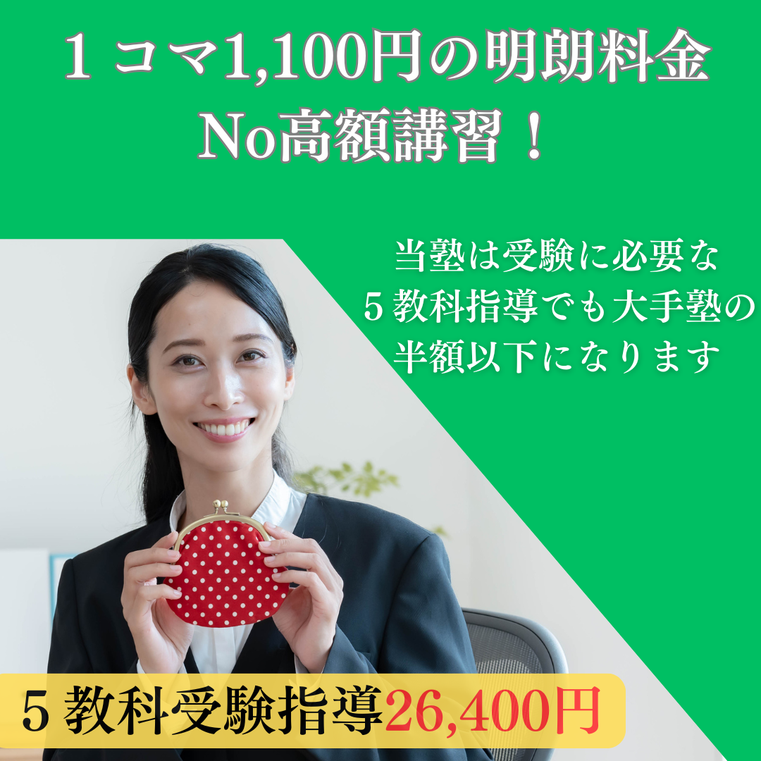当塾では、自信があるからこそ事前にかかるお金を明記しています。一年間でかかる費用をぜひ比較してください。