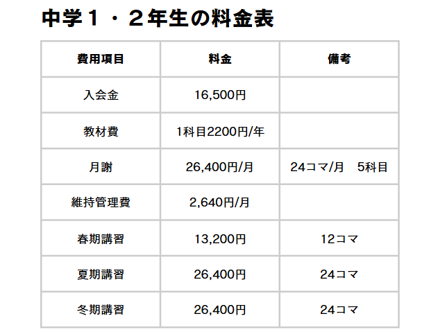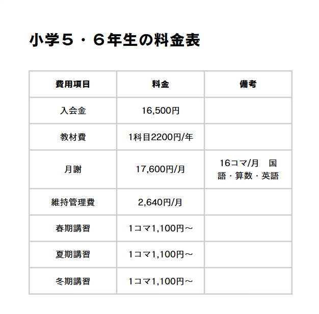 他塾と違い、学年が上がっていっても、授業単価が上がることはありません。