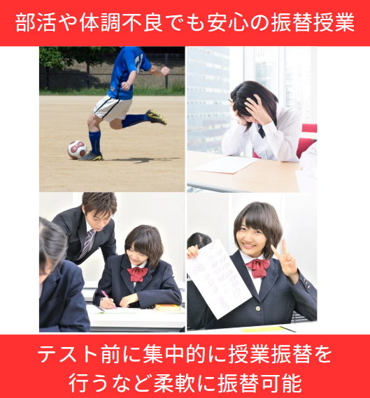 ⑤学校行事や試合、体調不良でも対応できる振替授業